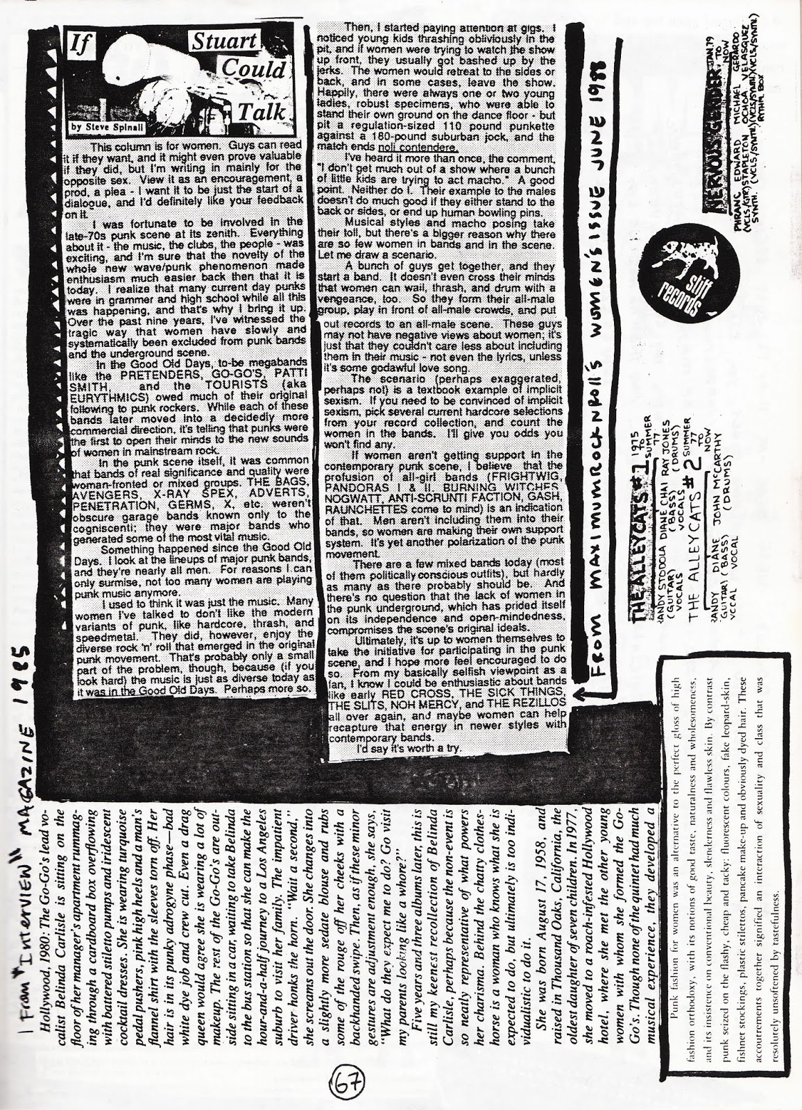 Elissa, the Go-Go's beat-girl, wasn't present for the interview……….