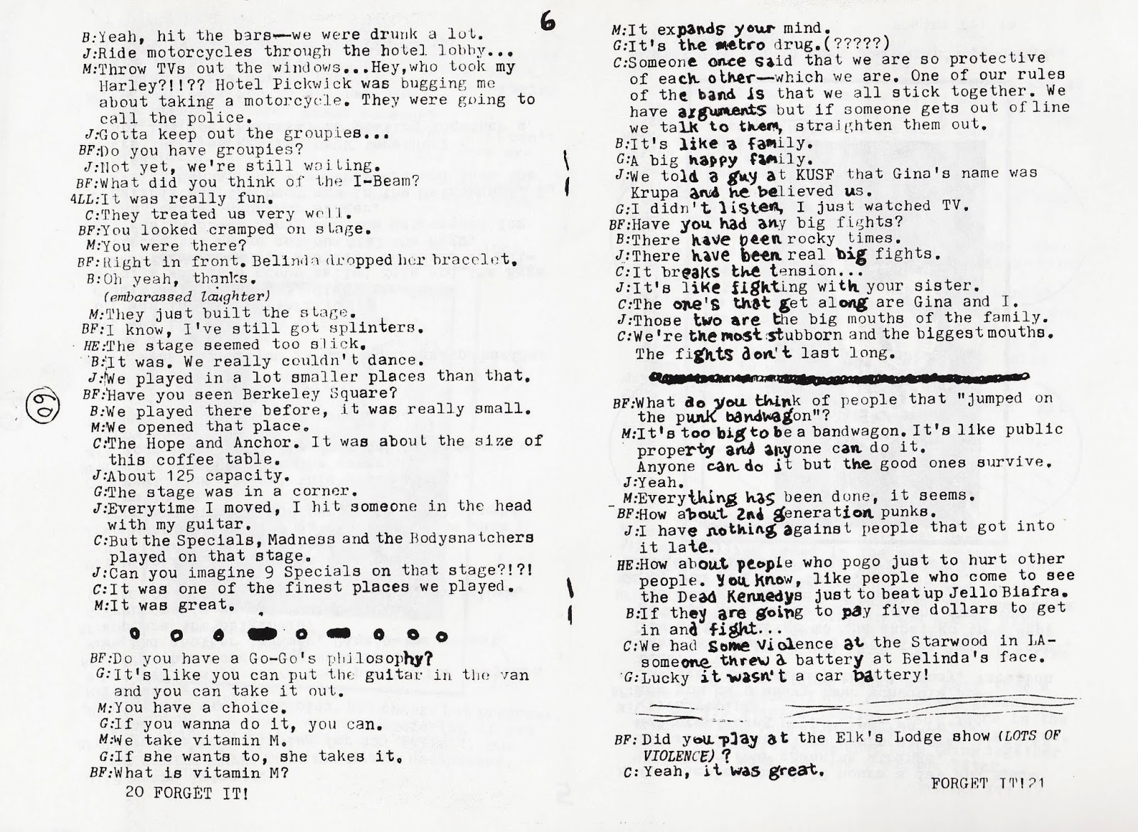 she's working, she should just slip some stuff in about the Go-Go's. I bet you